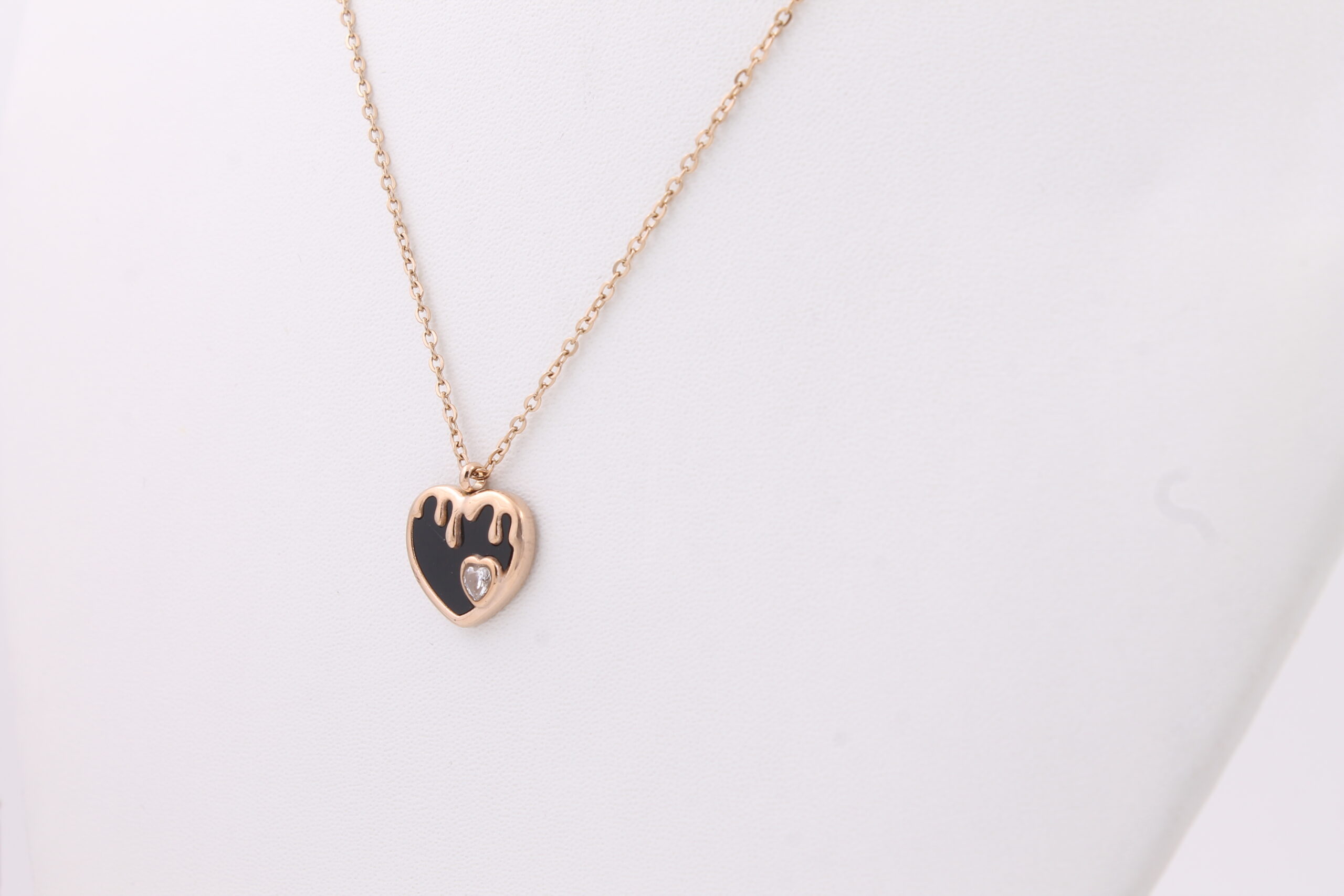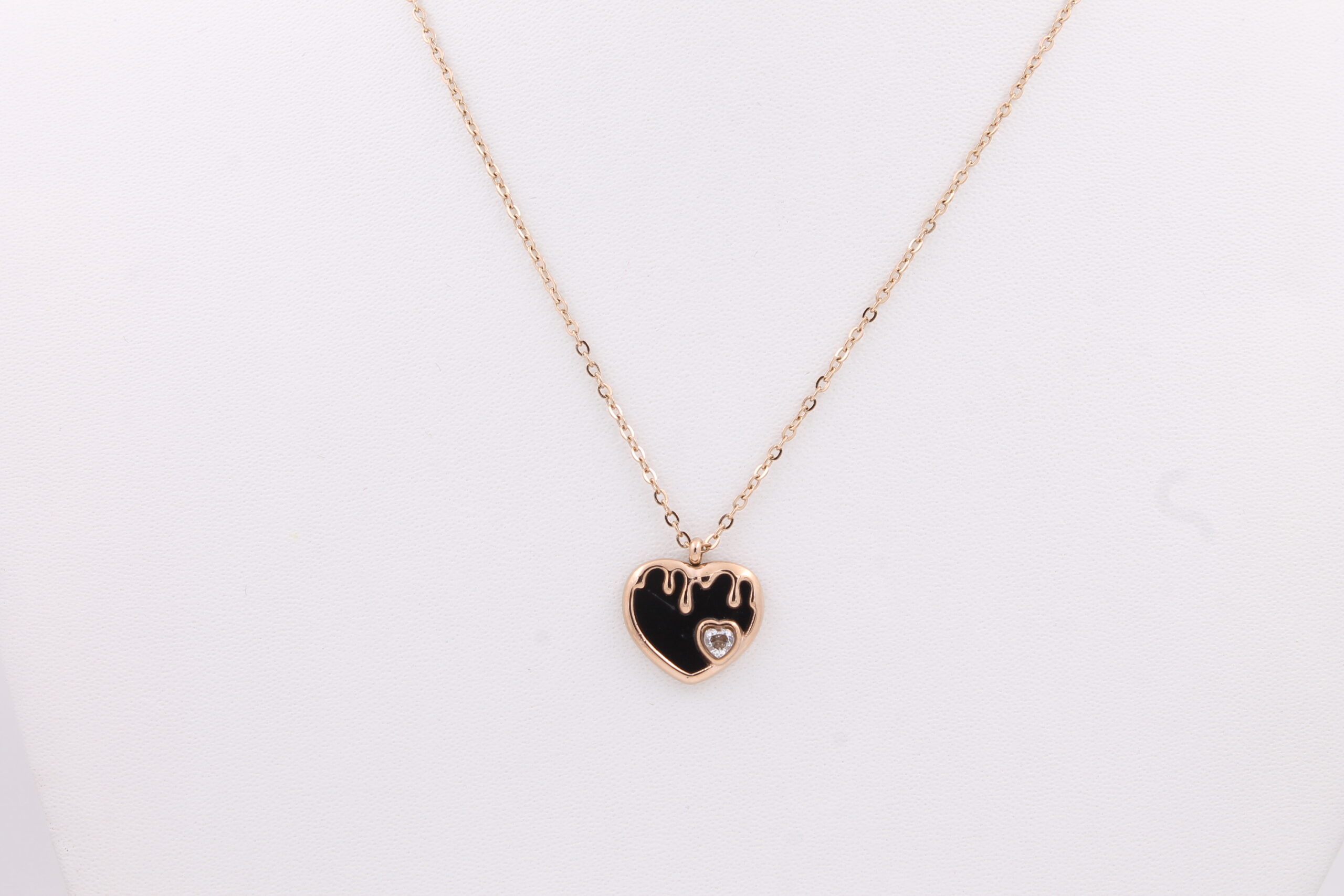 COUPLE HEART DIMOND DROP CHAIN NECKLACE WITH DIMOND ENGRAVED ON THEM,ROSE GOLD PENDANT CHAIN.