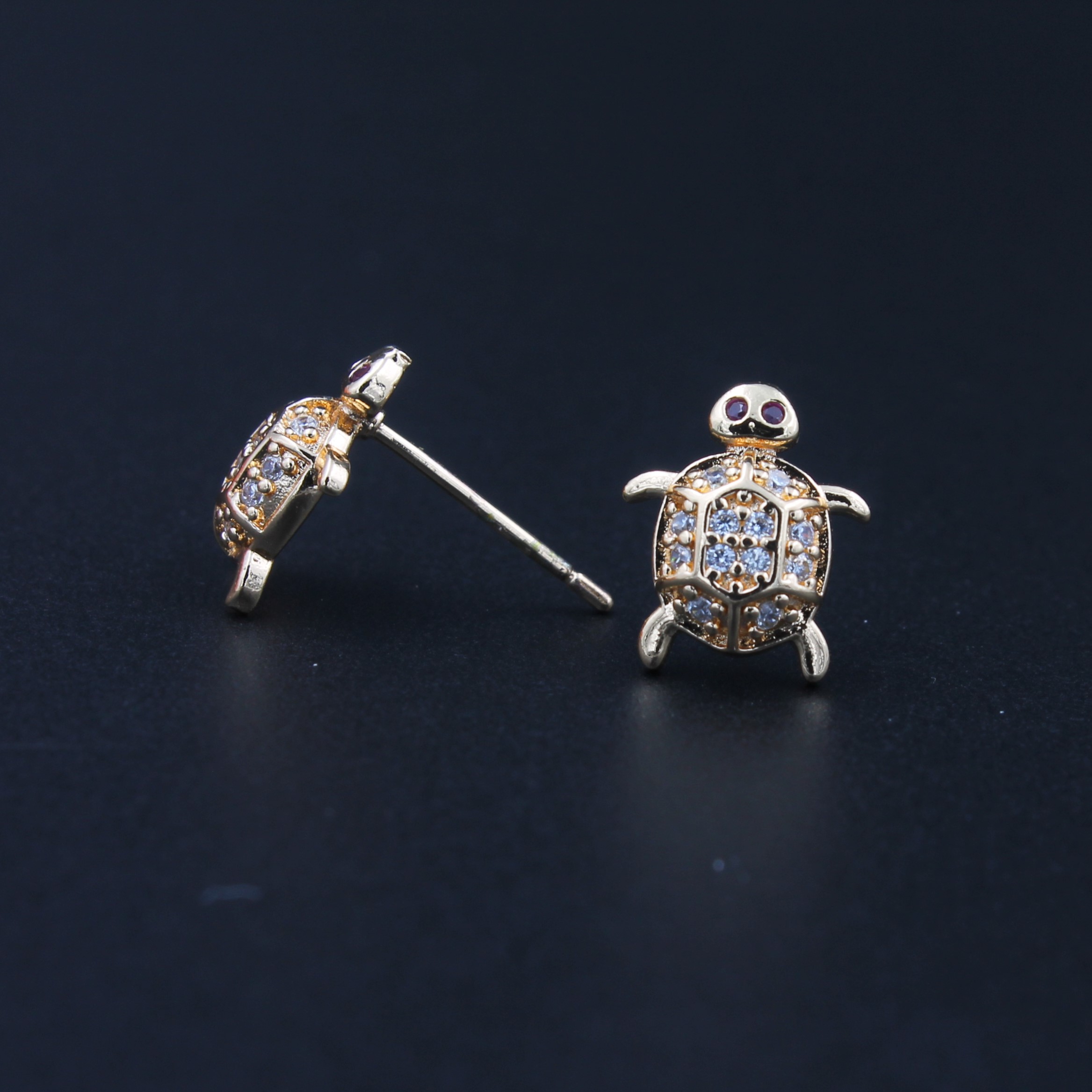 COUPLE TURTLE GOLDEN STUD EARRINS WITH DETAILED DIAMOND